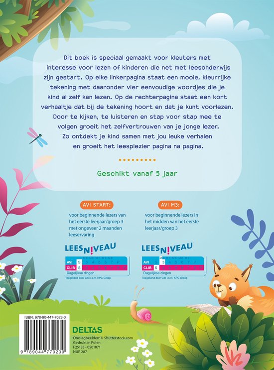 Dit boek van uitgeverij Deltas is ideaal voor jonge kinderen die interesse hebben in lezen of net leren lezen. Op elke linkerpagina staat een kleurrijke tekening met daaronder vier eenvoudige woordjes die je kind al zelf kan lezen. De rechterpagina bevat een kort verhaaltje dat bij de tekening hoort en dat jij kunt voorlezen. Zo kan je kind eerst luisteren en meelezen, waardoor het zelfvertrouwen groeit en lezen steeds leuker wordt. Stap voor stap bouwt je kind leeservaring op en zal het uiteindelijk de verhalen helemaal zelfstandig kunnen lezen. Samen ontdekken jullie de leukste verhalen en wordt lezen een vrolijk en leerzaam avontuur!
