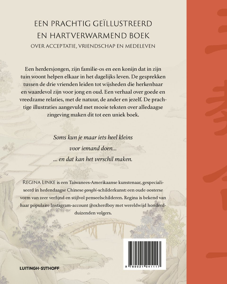 In De reis van de jonge ossenhoeder van Regina Linke helpen een herdersjongen, zijn familie-os en een konijn dat in zijn tuin leeft elkaar bij het navigeren in het dagelijkse leven. Dit prachtig geïllustreerde en hartverwarmende cadeauboek over alledaagse zingeving, gestoeld op oosterse filosofie, is voor de fans van De jongen, de vos, de mol en het paard.