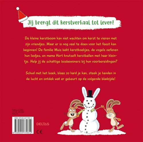 De kleine kerstboom in dit interactieve voorleesboek kan niet wachten om kerst te vieren met zijn vriendjes. Maar er is nog veel te doen voor het feest kan beginnen! Helpen jullie de familie Muis met het bakken van kerstkoekjes, de vogels met het oefenen van hun liedjes en mama Hert en haar kleintje met het knutselen van kerstballen? Het boek nodigt kinderen uit om allerlei opdrachten uit te voeren. Steek je handen in de lucht, blaas zo hard als je kunt, schud met het...
