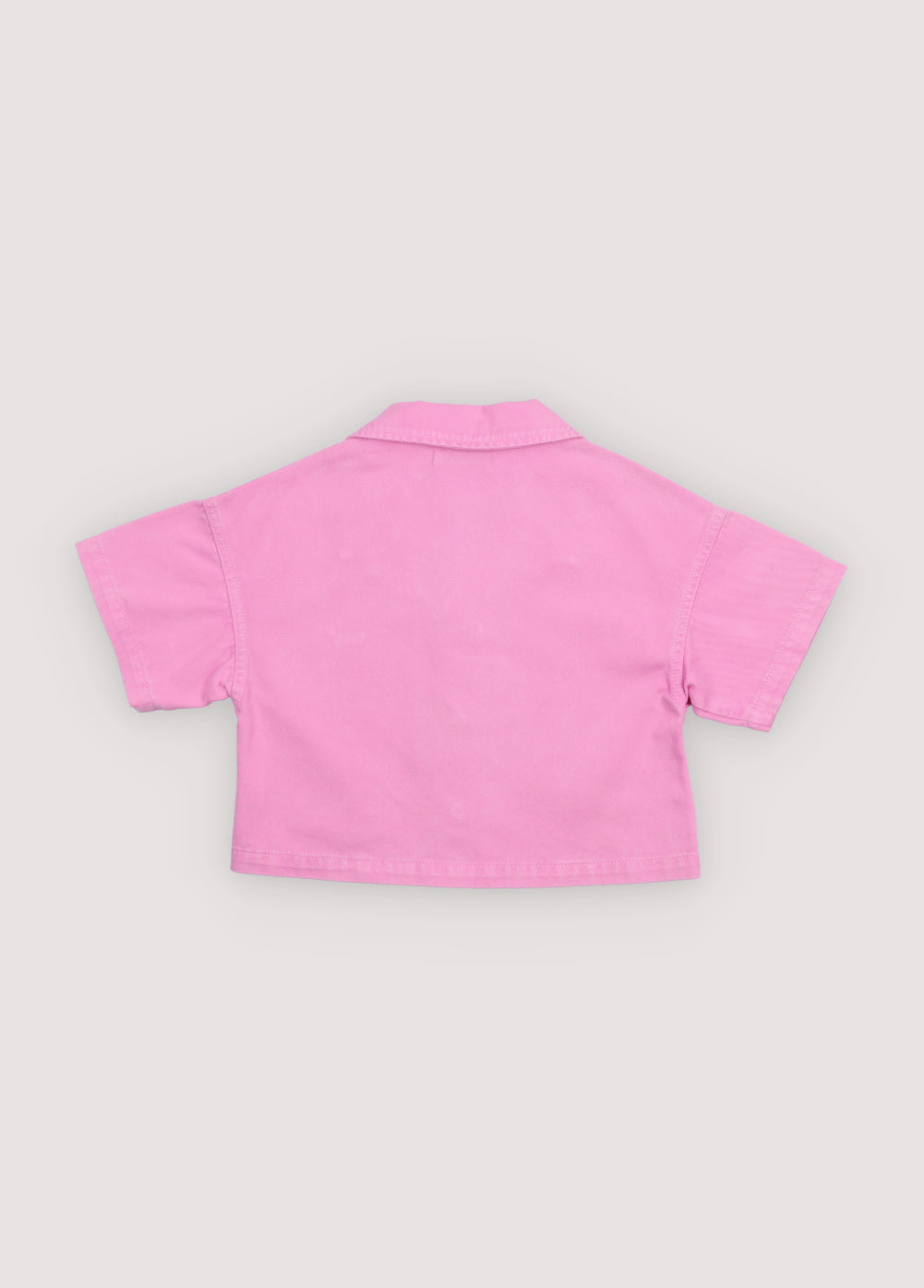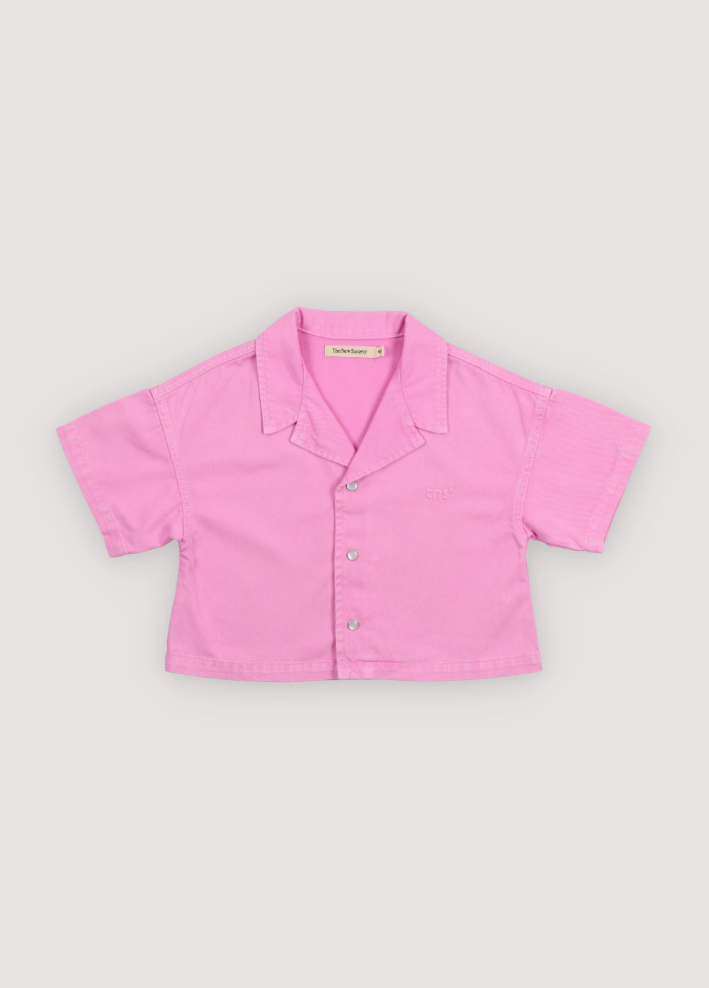 Short-sleeve cropped shirt in washed denim, featuring a front snap closure, chest pocket, and TNS heart embroidery. Ideal for completing the look with the matching shorts.
