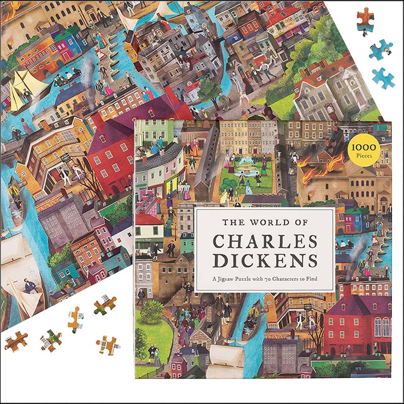 Duik in Dickens' legendarische Londen in de volgende van onze bestseller-puzzelreeks. Trotseer je de achterbuurten om Fagins hol te vinden, of riskeer je Scrooge's grijns in het telhuis? Van Uriah Heep's schurkachtige komedie tot Miss Havisham's eeuwige hartzeer, Dickens fans zullen - net als Oliver - vragen om meer als ze deze 1000-delige puzzel bouwen en de drama's die erin verborgen zitten herbeleven.
