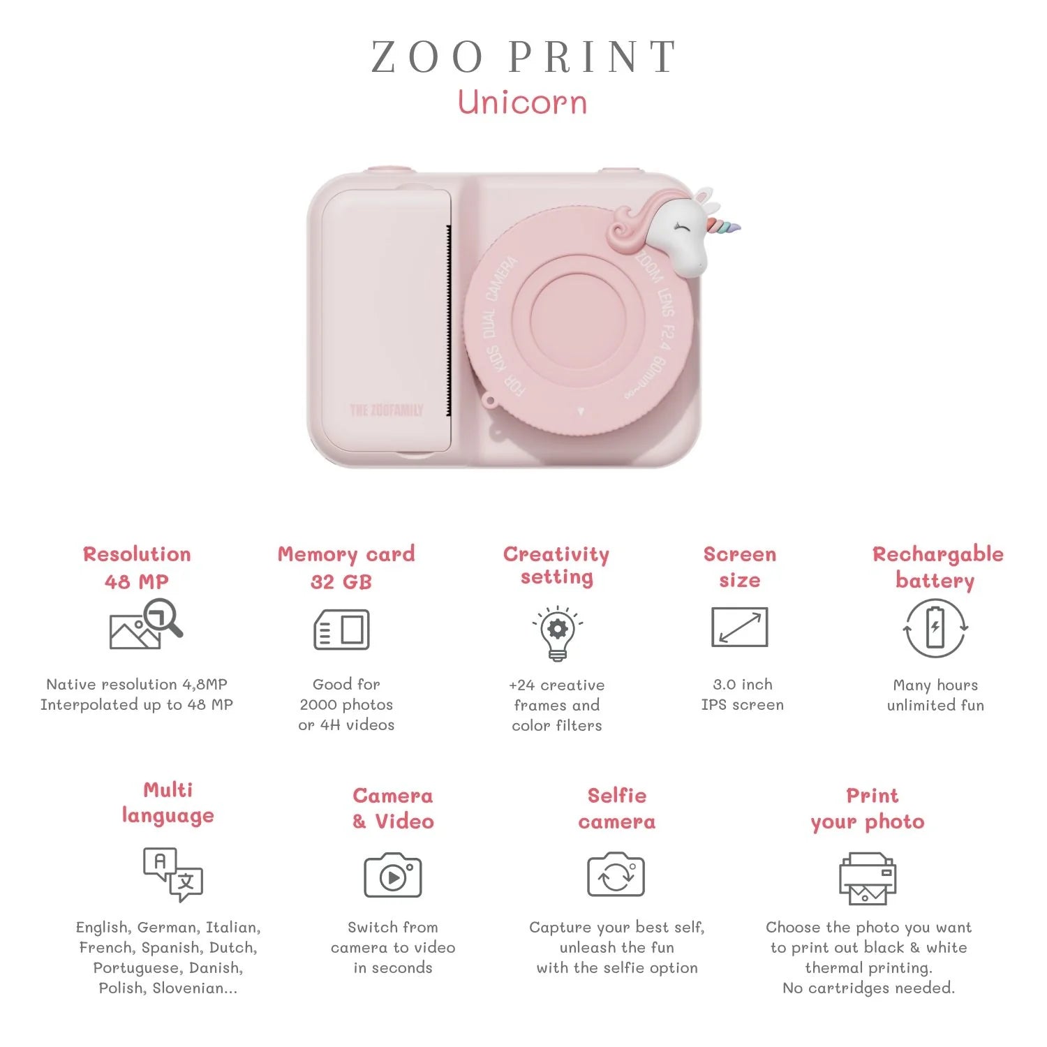 Laat ze kennismaken met de magie van fotografie met onze stijlvolle kinder unicorn instant print camera! Deze prachtige point-and-shoot camera drukt direct zwart-wit foto's af of slaat ze op om ze later af te drukken. Ze werken op warmteoverdracht, dus je hebt geen dure inktpatronen nodig. Hij heeft een levendig 3-inch kleurenscherm, lensbescherming en een goede afdrukresolutie.