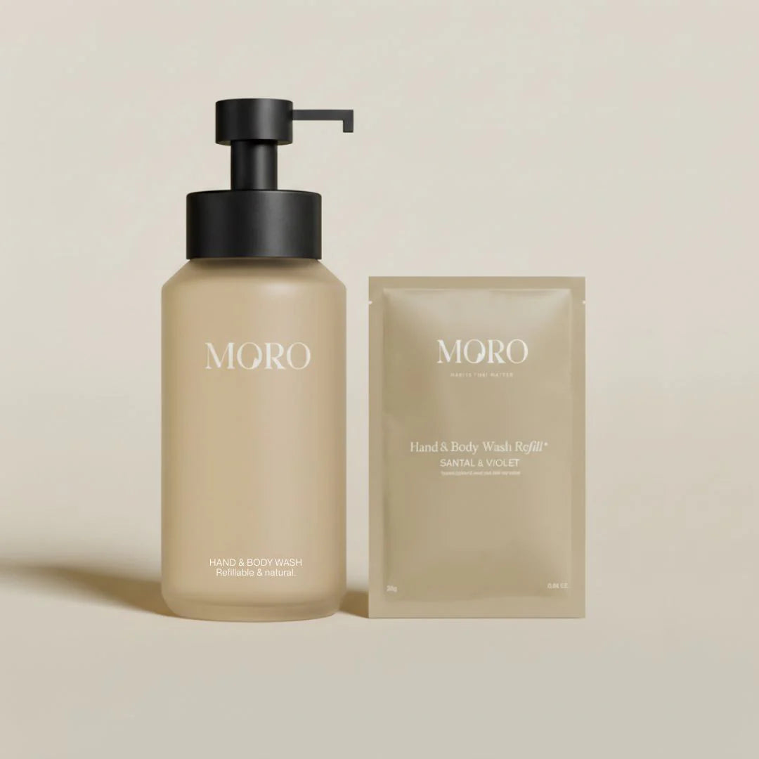 Onze poeder-tot-gel Hand Wash helpt je eenvoudig plastic afval te vermijden. Gewoon kraanwater toevoegen, schudden en klaar. Want waarom 80% water verschepen als je al een kraan in huis hebt? Onze kenmerkende flessen zijn gemaakt van glas en ontworpen om opnieuw te worden gevuld - keer op keer.