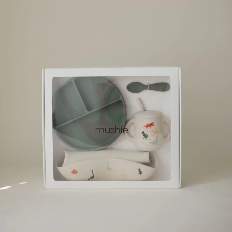 Bevat een siliconen bord, slabber, drinkbeker met rietje en lepel.